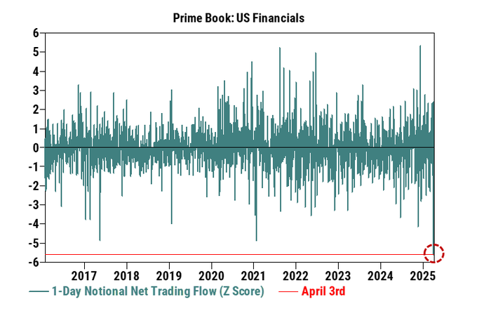 Last week brought about the fastest selling in financials by hedge funds on record, according to Goldman