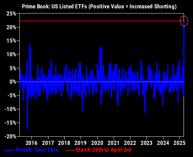 This is the largest short flow into listed ETFs that we've seen in over a decade, according to Goldman