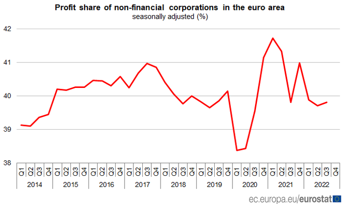 Euro area business profit share at 39.8% in the third quarter of 2022, slightly up from 39.7% in the previous quarter