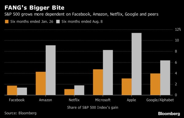 The S&P 500's dependence on FANG stocks is growing as the index nears another record