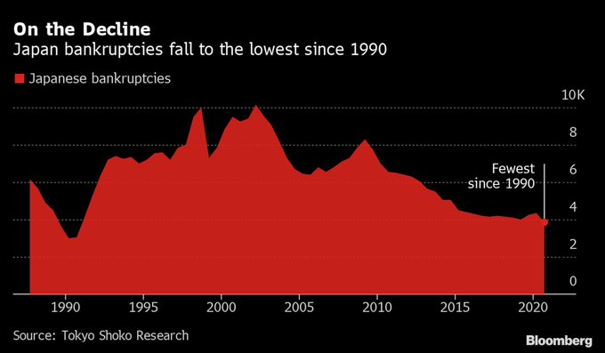 Japanese bankruptcies decline to the lowest level in 31 years