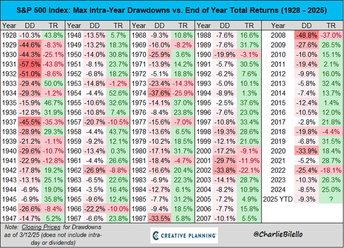 The S&P 500 has returned an average of 10% per year since 1928 despite an average intra-year drawdown of -16%. There's no upside without occasional downside, no reward without risk.