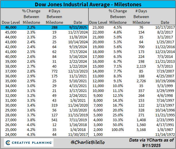 The Dow crossed above 46,000 this week for the first time, joining the S&P 500 and Nasdaq Composite at record highs. This is the 13th straight year in which the Dow has hit at least 1 all-time high, a streak that has never happened before