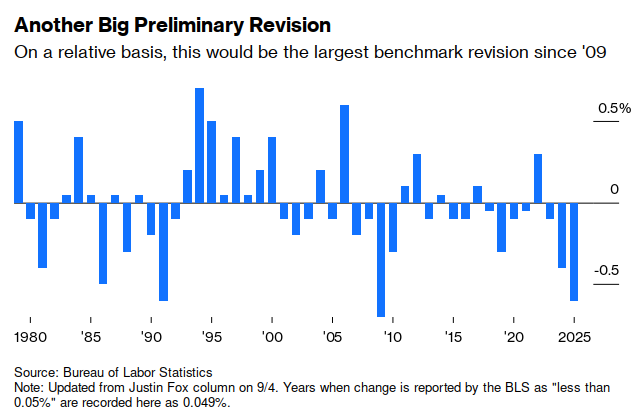 On a relative basis this is the largest downward revision to NFP data since the Great Financial Crisis