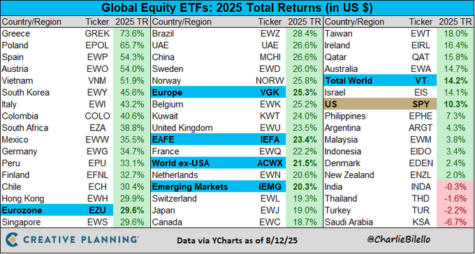 2009 (world ex-US +22% YTD). The Eurozone is leading all