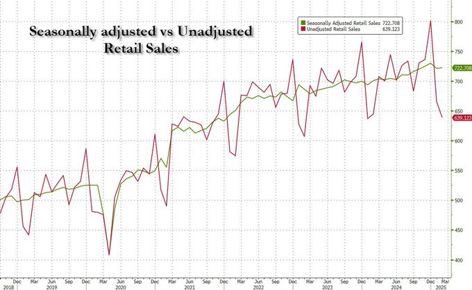 seasonally adjusted retail sales ugly, unch YoY, though Feb