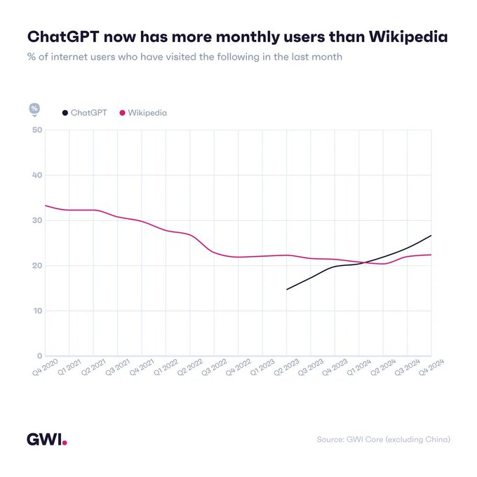 ChatGPT now has more monthly users than Wikipedia