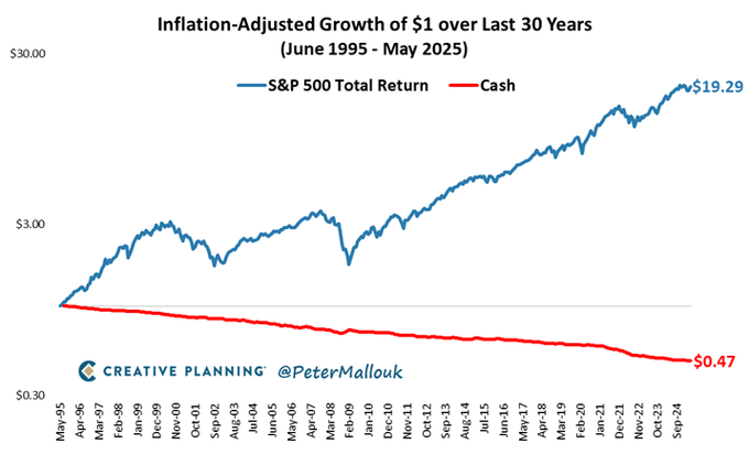 Growth of $1 over time after inflation. Put your money to work or lose your purchasing power.