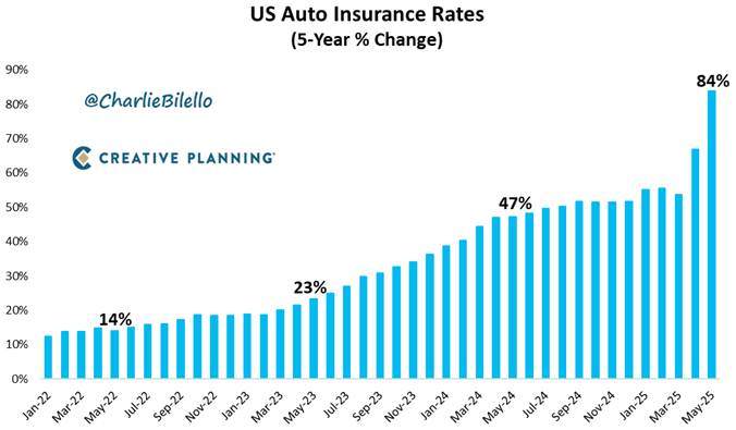 Auto insurance rates in the US have increased by 84% over the past 5 years. That's the biggest 5-year spike on record.