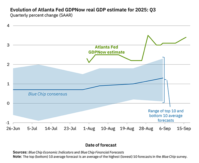 The Atlanta Fed GDPNow Index rose to 3.41% from 3.09% for Q3 2025