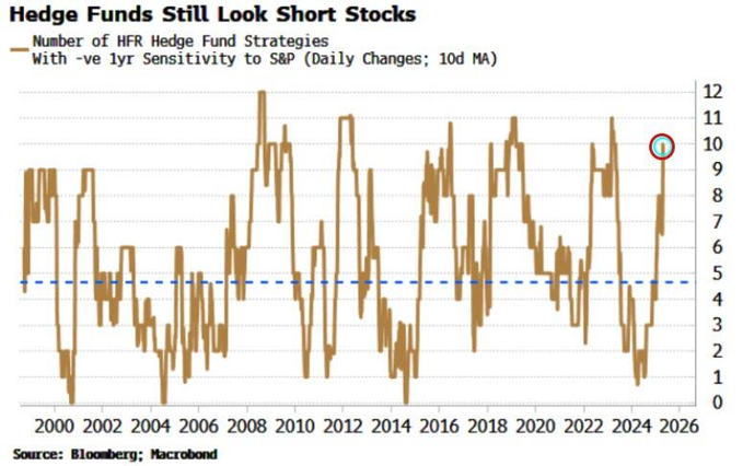 Other indications also suggest that hedge funds are still quite short stocks here, per Simon White of Bloomberg