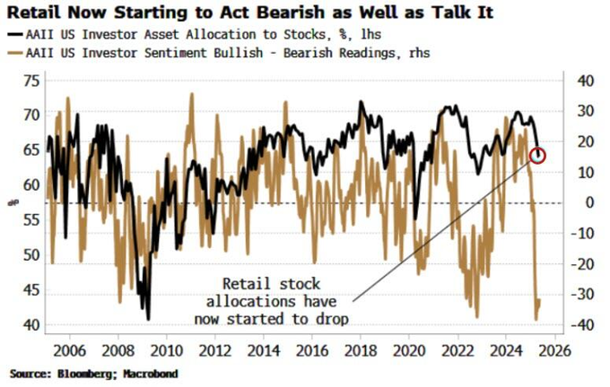 Retail bears are starting to sell down long positions after showing negative sentiment for weeks
