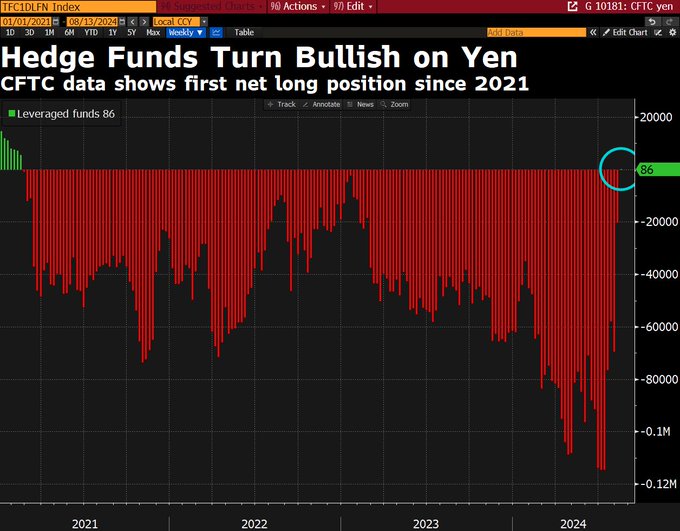 Hedge funds have finally turned net bullish on the Japanese Yen