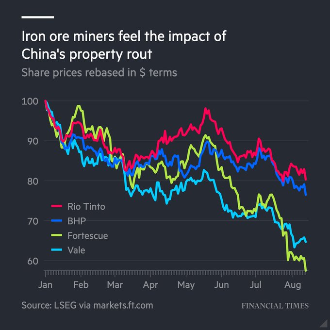 Iron ore prices have hit their lowest level in two years, wiping off about $100bn in the market value of the 'big four' iron ore miners