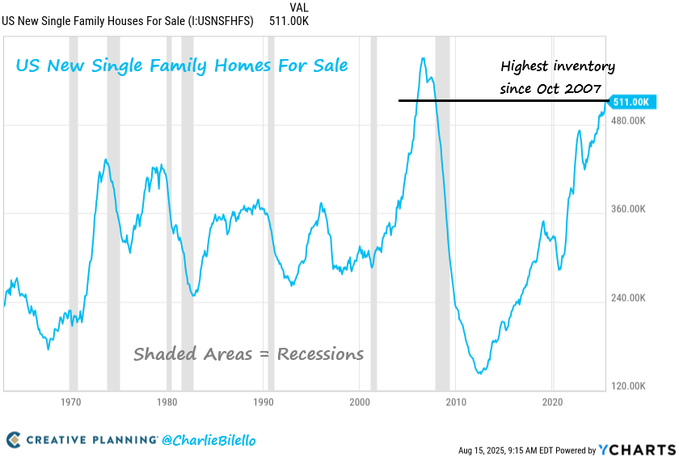 There are now 511,000 new homes for sale in the US, the highest inventory since October 2007.