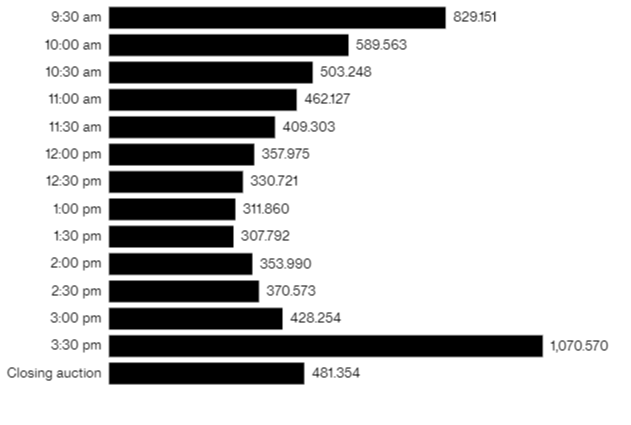 Average 2019 Daily Volume concentrated in the first 30 min and last 30 min of the NY Session
