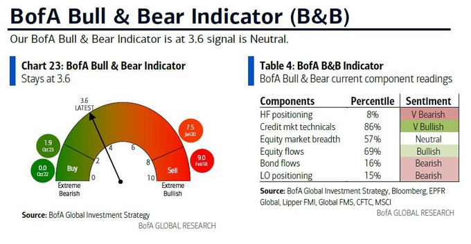 BofA's Bull & Bear indicator is giving a neutral reading at 3.6