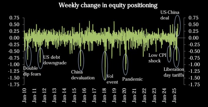The jump in long equity positioning last week was the largest on record, per Deustche Bank!