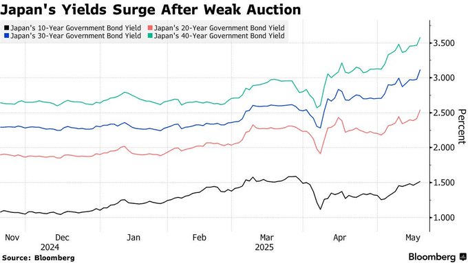 Japanese bond yields are surging after the worst 20-year auction since 2012. This drove yields on the 20-year and 30-year to levels not seen in a quarter century