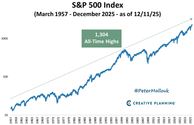 inception in 1957 through today, the S&P 500 has hit 1,304