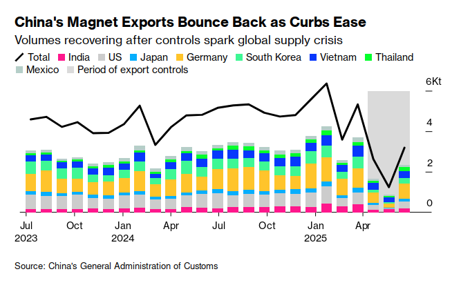 China’s Rare-Earth Magnet Shipments Jump 158% After Trade Truce – BBG