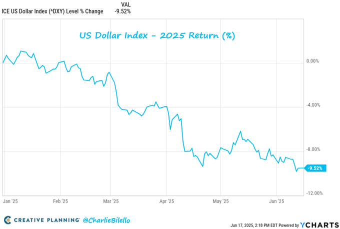 The US Dollar Index is down over 9% in 2025, its worst start to a year ever.