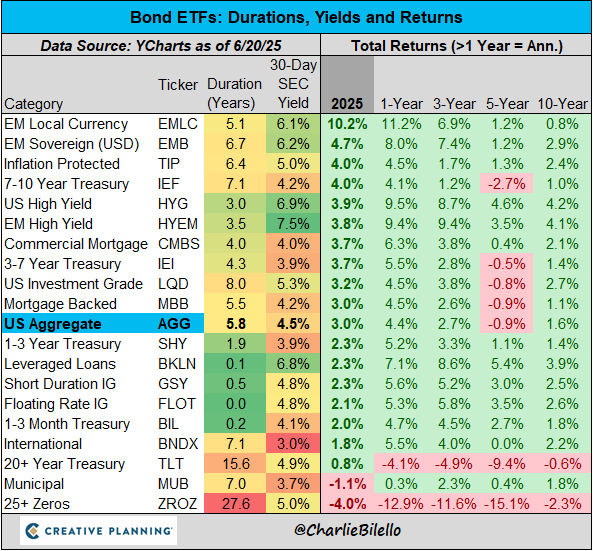 The longest duration bond ETF ($ZROZ) is down over 60% from its peak in 2020 and now has a negative return over the last 10 years. Bond ETF Returns...