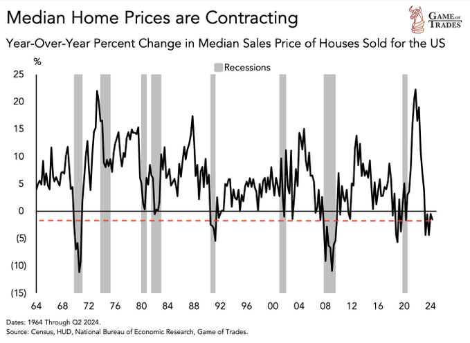 Median home prices are now contracting at levels only seen 4 times since 1964
