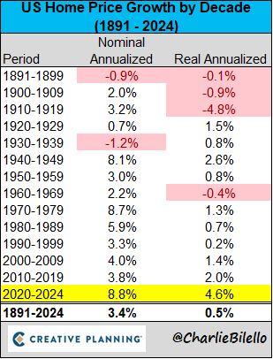 The 1st half of the 2020s, with annualized home price appreciation of 4.6% above inflation, is unlikely to repeated in the back half. There's no rational justification for prices to continue to outpace inflation by such a wide margin.