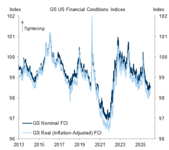 Financial conditions remain relatively loose, per Goldman