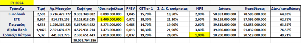 δείκτη δάνεια προς καταθέσεις. Ένα P/E Ratio στο μόλις 4,63χ