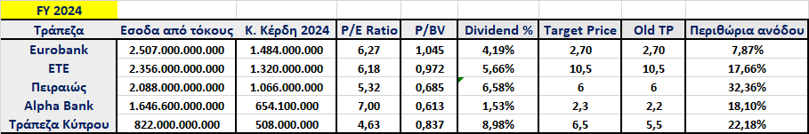 με βάση τα κέρδη του 2024, αν και πιστεύουμε πως θα