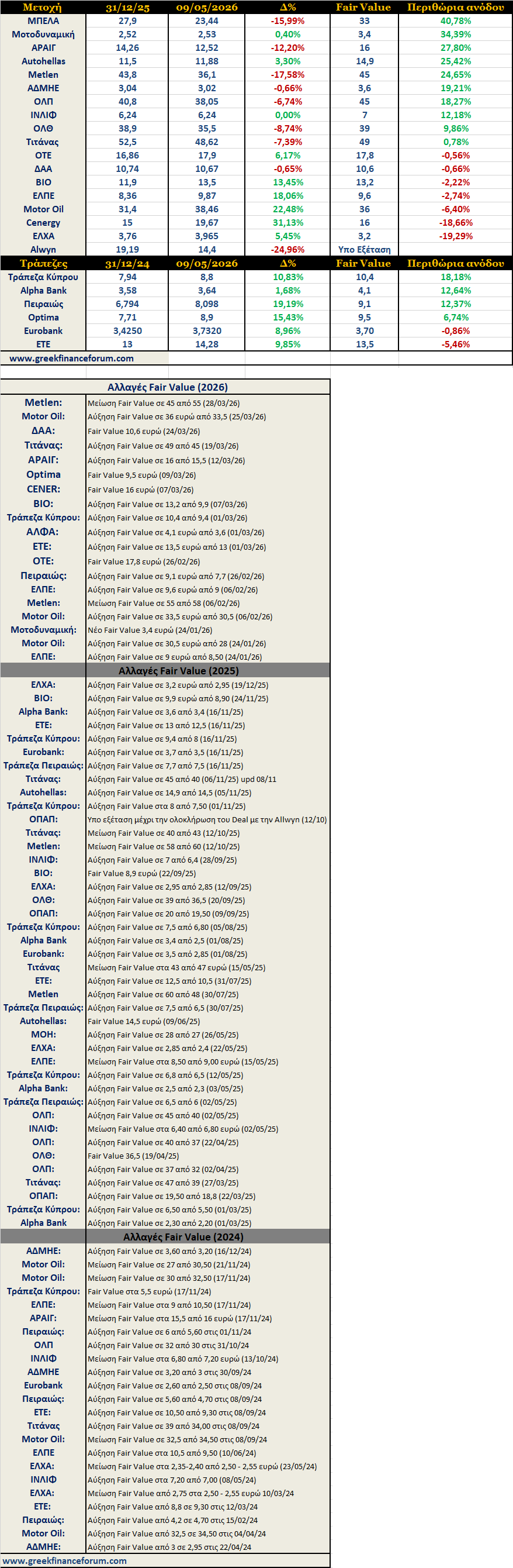 Τα Fair Value, οι αποδόσεις του 2026 και τα περιθώρια ανόδου upd