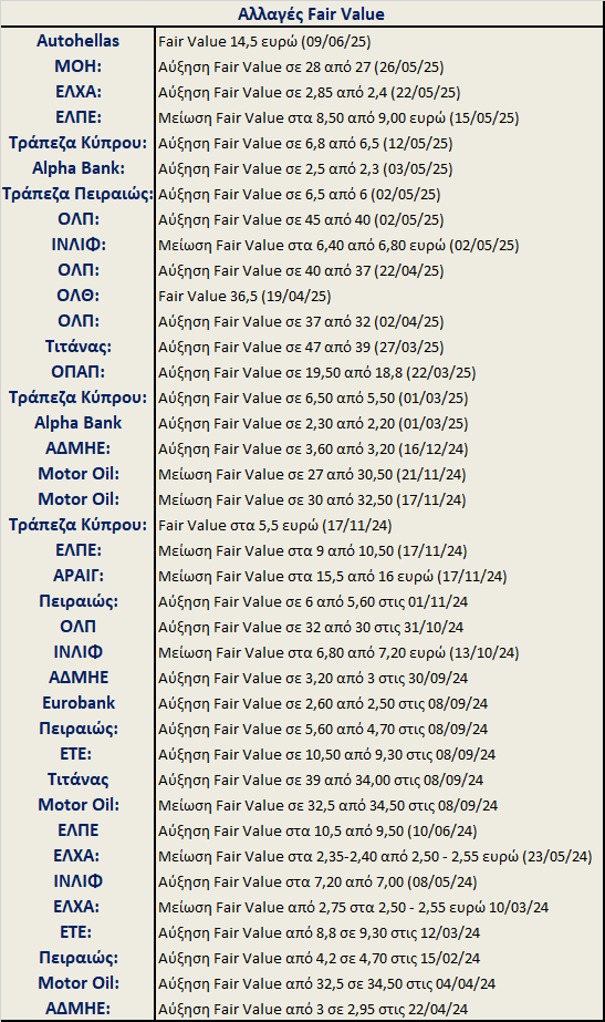 μας τα τελευταία χρόνια. Το Fair Value που έχουμε θέσει