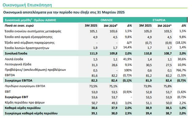 εκατ. ευρώ για το α’ τρίμηνο 2025, σημειώνοντας αύξηση 2% σε