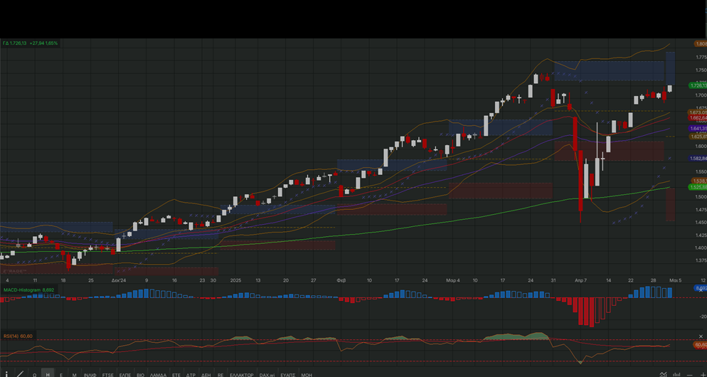 με επόμενο στόχο τις αντιστάσεις στις 1.740-1.750 μονάδες...