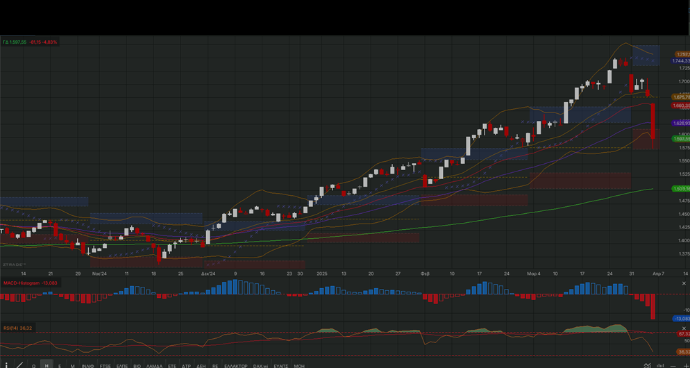 τις επόμενες ισχυρές στηρίξεις στις 1.550 – 1.540 και 1.510