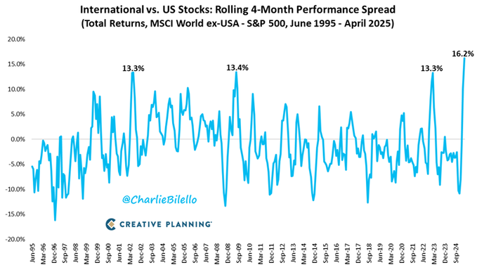 ex-USA, κατέγραψαν την ισχυρότερη 4μηνη υπεραπόδοσή τους σε