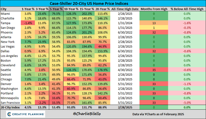 δείκτη Case-Shiller (Φεβρουάριος 2025), οι μέσες τιμές