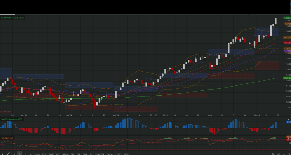 στις 1.693,61 μονάδες, +1,33%, μια ανάσα από τις 1.700