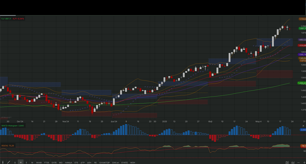 των 1.700 – 1.710 μονάδες, οι επόμενες αντιστάσεις στόχος