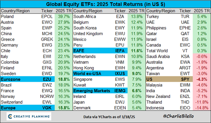 Ισπανία (EWP) με 25,1%. Η Κίνα (MCHI) καταγράφει επίσης