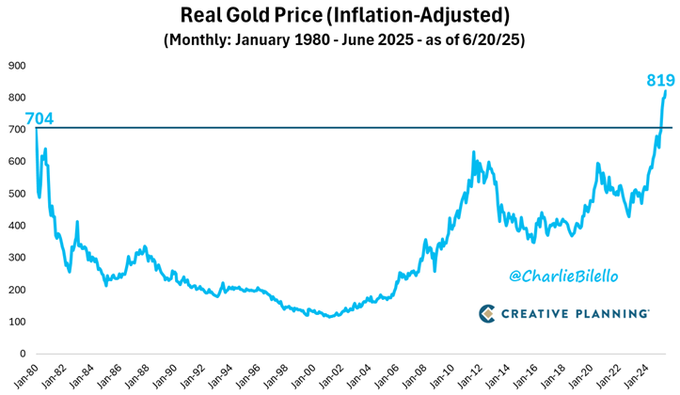 χρυσού από τον Ιανουάριο του 1980 έως τον Ιούνιο του 2025.