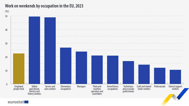 Σαββατοκύριακα στην ΕΕ, με 32,3%. Ακολουθούν η Ιταλία με