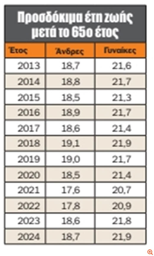προσδόκιμο ζωής μετά τα 65 δεν έχει αυξηθεί σε βαθμό που να