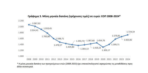 αναδεικνύει επίσης ότι οι συνολικές δαπάνες αυξήθηκαν το