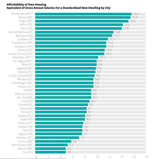 Πράγα βρίσκεται στις λιγότερο προσιτές πόλεις, με 15