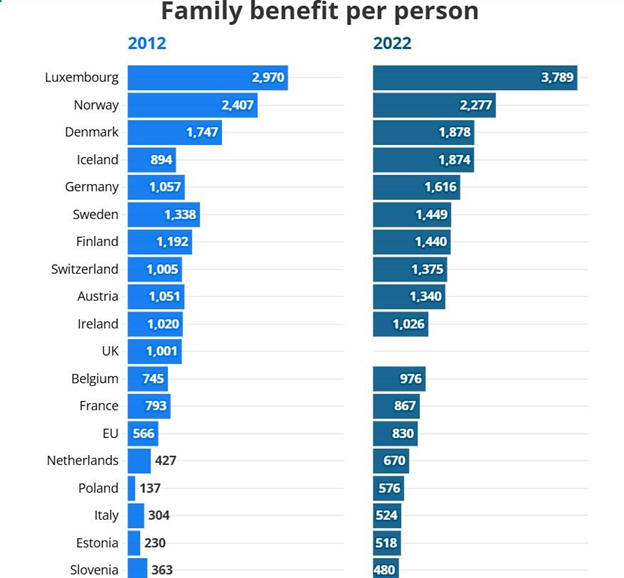 δαπάνες για οικογενειακά επιδόματα, ξεπερνώντας μόνο τη