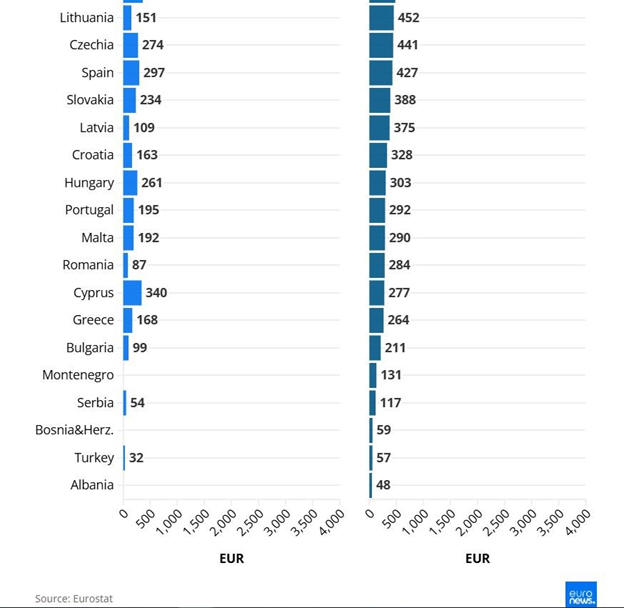 167 ευρώ). Στη Βουλγαρία, για σύγκριση, το ποσό