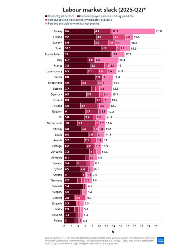 συνολικό ποσοστό ανεργίας –επίσημης και κρυφής– στην ΕΕ